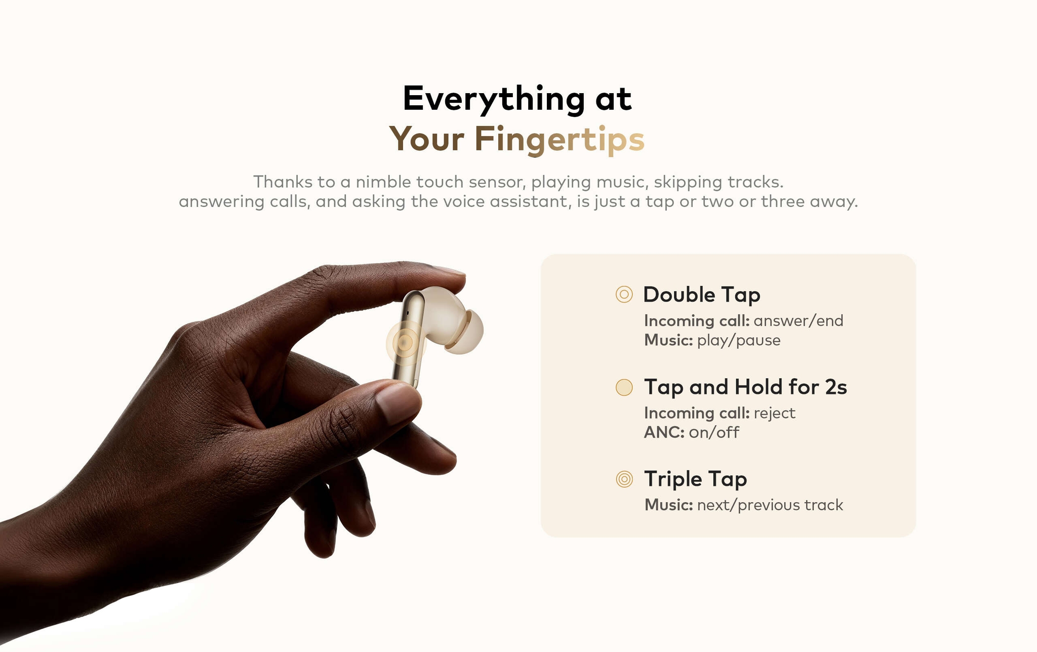 Thanks to a nimble touch sensor, playing music, skipping tracks. answering calls, and asking the voice assistant, is just a tap or two or three away.