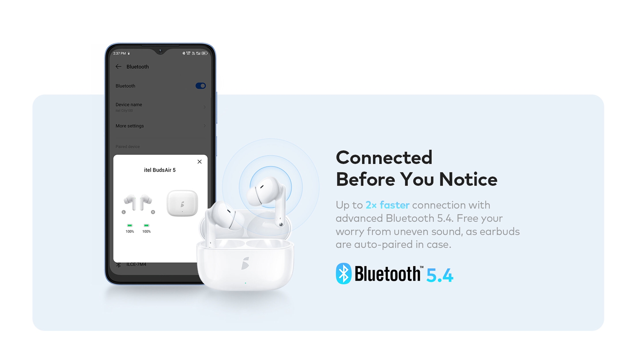 Up to 2x faster connection with advanced Bluetooth 5.4. Free your worry from uneven sound, as earbuds