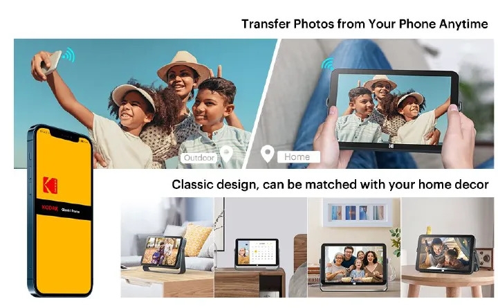 Tips: The KODAK digital photo frame requires you to download the "KODAK Digital Frame" on your phone and register your account on the app. Then you can scan the 9-digit QR code on the frame to bind it to your account and start uploading photos from your phone.