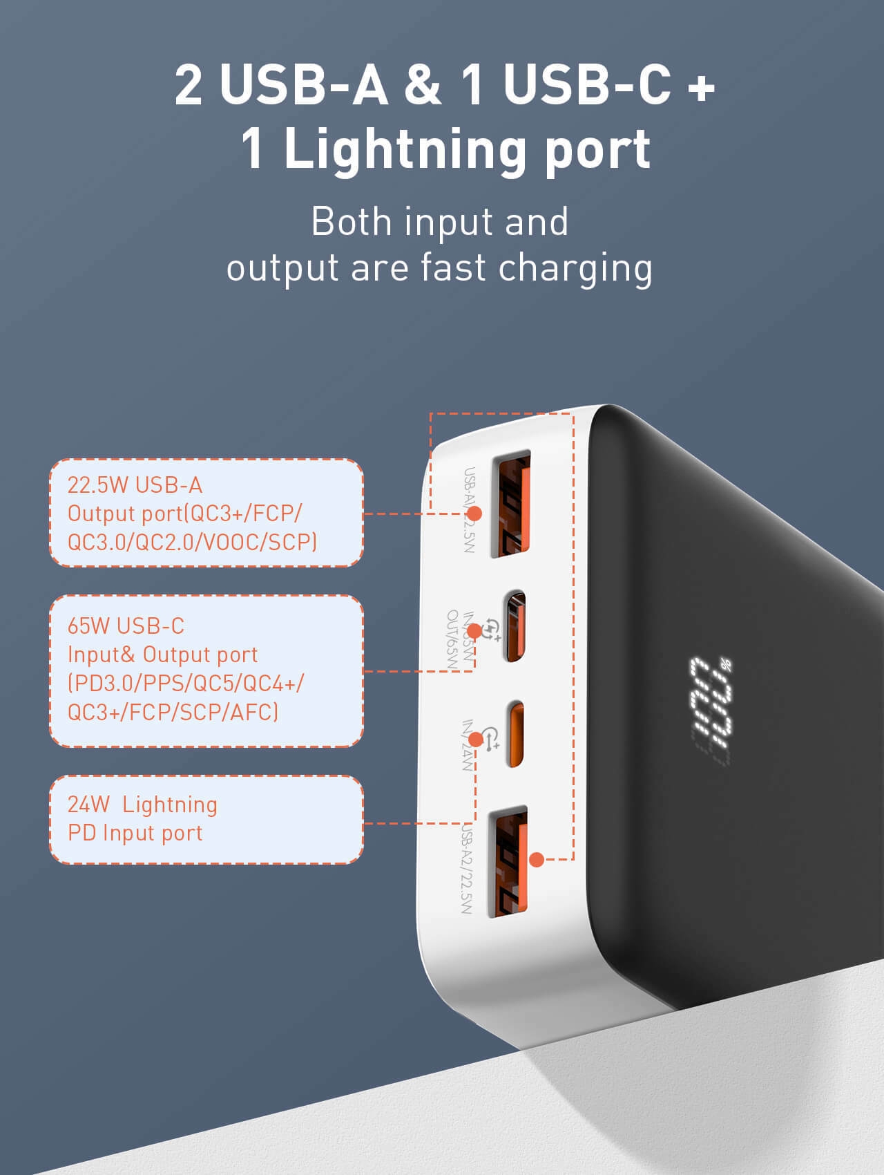 *22.5W PD+QC output