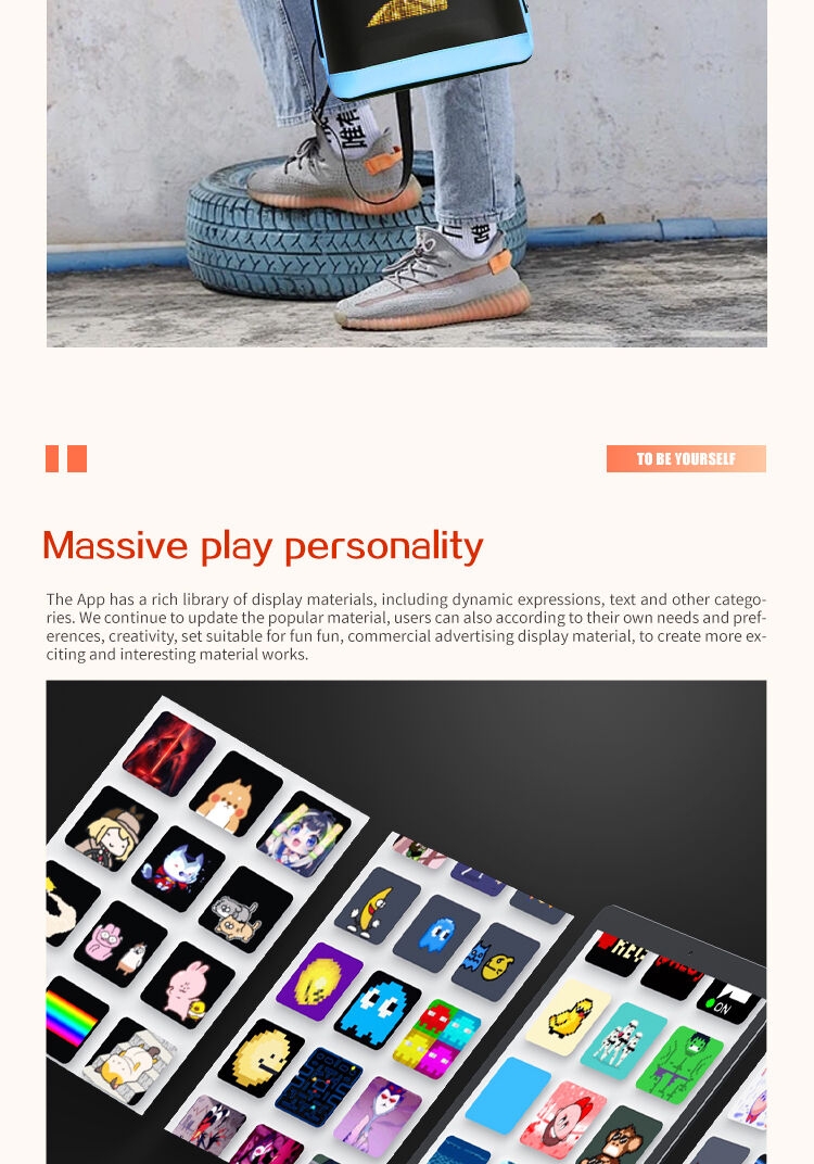 • Control by our APP — LOY SPACE app can be used with this Led backpack. You can change all settings through the app, add your custom pixel arts, photo or download other artworks/animations. The app is compatible with IOS and Android systems and is free to download from Google Store or APP Store.