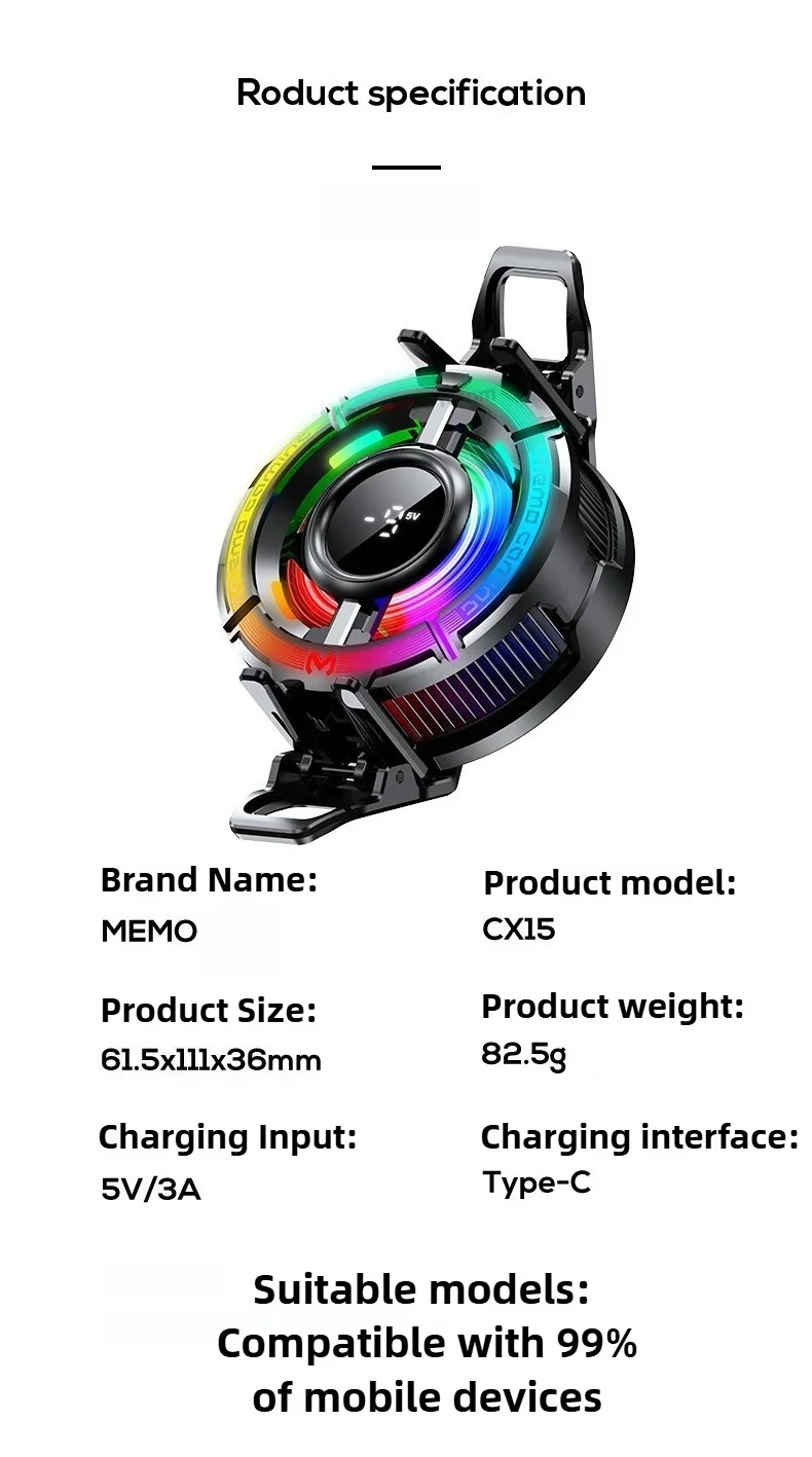 To achieve this effect, it is crucial to use an adapter with an output voltage higher than 5V3A and the provided charging cable. Additionally, ensure that the room temperature is below 25°C during operation to optimize performance. The magnetic back clamp ensures that the cooler attaches securely to your device, making it a reliable accessory for a wide range of smartphone models.