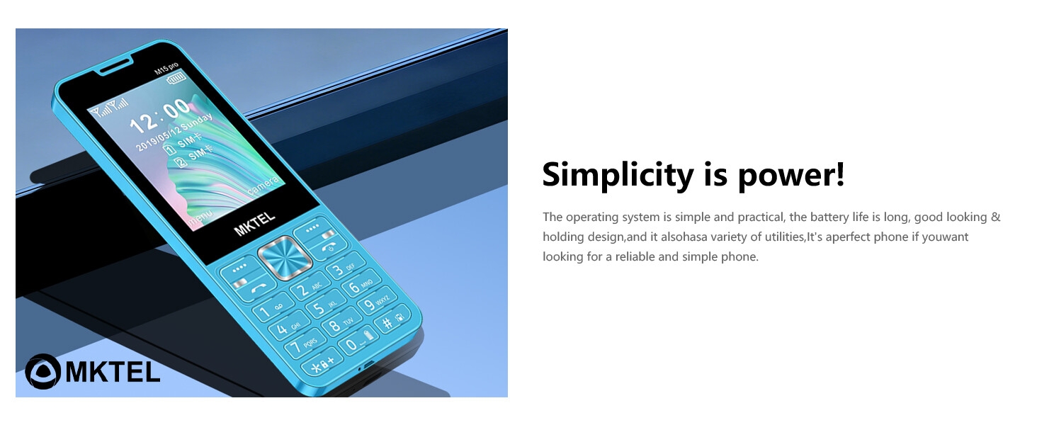 MKTEL M15 Pro Keypad Phone Dual SIM 2.8" 2000mAh Bluetooth Torch FM MP3 Blue