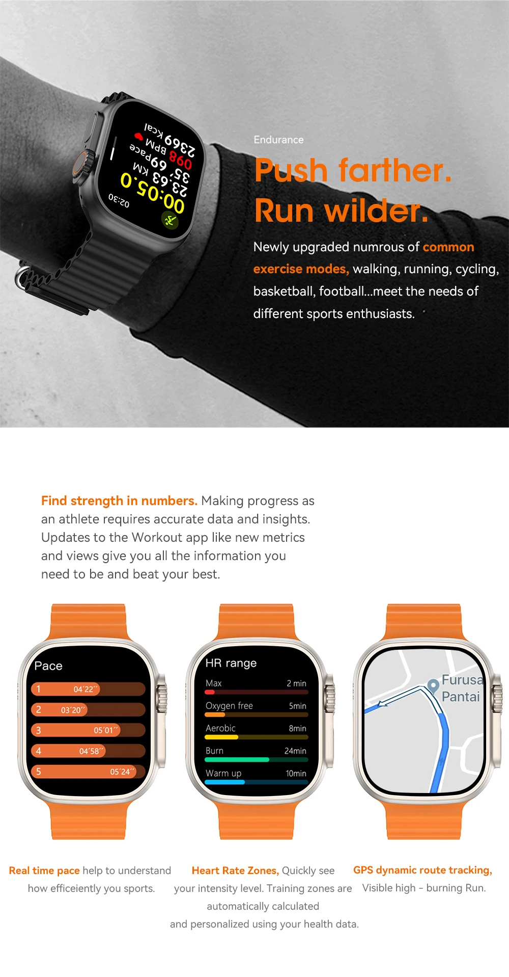 Compass , background management, APP skin function, APP movement track video, healthy family sharing positioning health information,SOS alert, album, video custom dial push