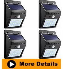 | Sensitive Motion Sensor It will light up when it senses movement within a distance of about 5-6 meters. Its large battery capacity makes the illumination last longer than other similar products. | Easy to Install Use the provided screws to install this outdoor motion light, no power supply or wiring needed. The separate design allows installation anywhere, indoor or outdoor, where lighting is needed. | Energy and Money Saving Solar lights convert up to 22% of sunlight to power, saving energy and costs. Choose a location where the solar panel can absorb sunlight to maximize nighttime lighting. |