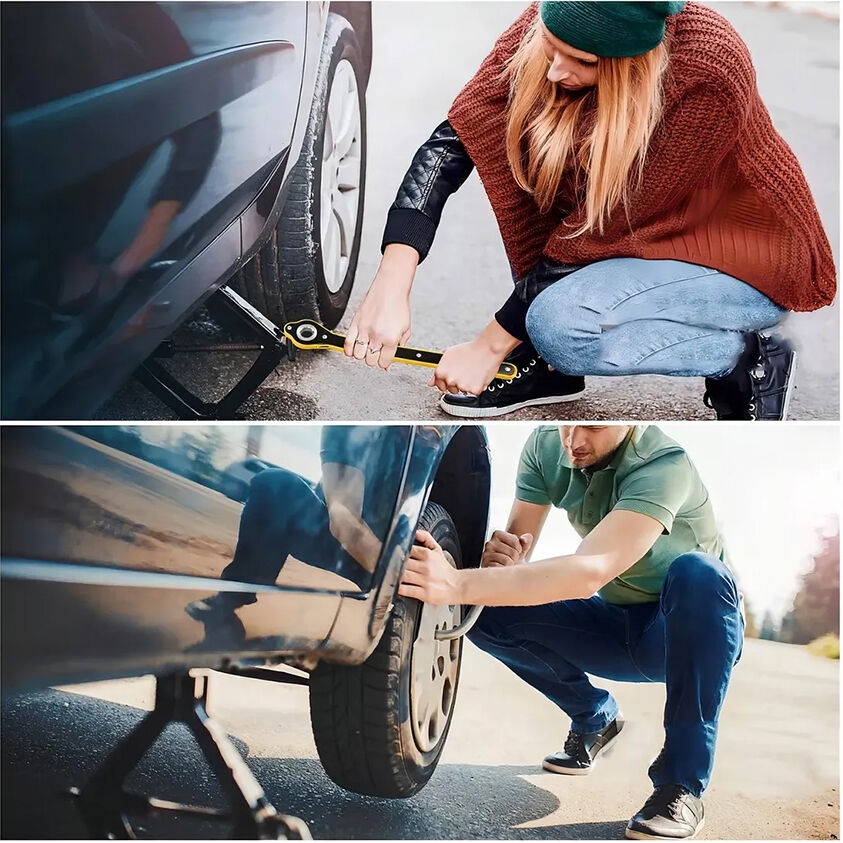 Heavy-duty 2-ton scissor car jack designed for safe and easy tire replacement. Features durable forged steel, wide stable base, and upgraded ratchet wrench for effortless lifting—perfect for roadside emergencies and mechanical repairs.