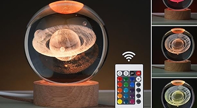 | Birthday Gift for Teens Boys and Girls The moon crystal is made through a 3D Engraving Process, it is made of high-quality K9 crystal materials, and the interior images are carved by advanced 3D laser engraving technology, it's vivid and clear, great as a unique gift for girls or boys. | 16 Colors and 5 Lighting Modes The saturn lamp has 16 colors and 5 lighting modes (Flash/ Strobe/ Fade/ Smooth/ Constant single color).The unique design will decorate the bedroom, living room, dining room, and outdoors with warmth and create an living environment for your family. |