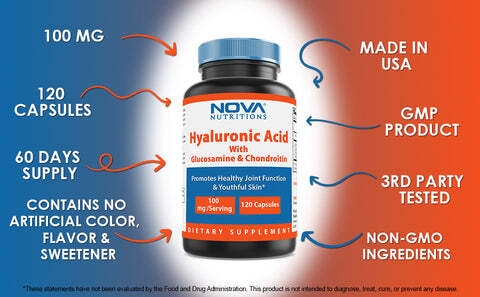 Nova Nutritions Hyaluronic Acid with Glucosamine Chondroitin 100mg per serving 120 Capsules