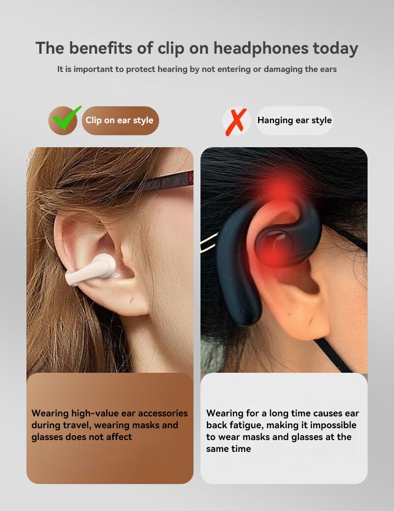 Open Ear Clip Wireless Earphones, Open Ear Earphones, Lightweight Comfort, Stable Compatibility, Bluetooth 5.3 Earphone with Microphone, Waterproof Bone Conductive Earphones for Fitness Sports Running, Exercise