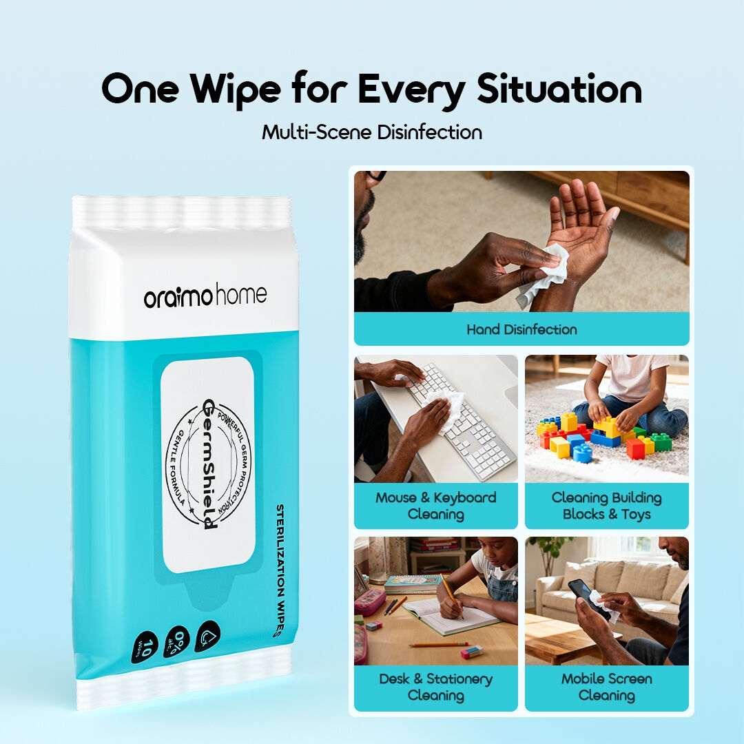 Oraimo 2in1 GermShield Alcohol-Free & Plant-Based Sterilization Wipes