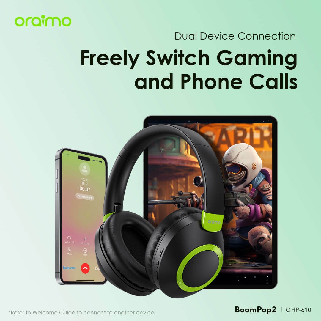 BoomPop2 can connect to 2 devices simultaneously, allowing you to play games on tablet without missing calls from your phone.