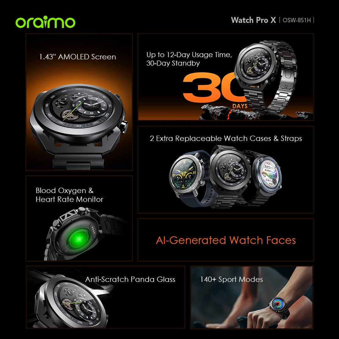 The Watch Pro X includes original MechaMetal Set, and 2 free extra ChromaTech Set & ZenithAlloy Set. Switch effortlessly to match your outfit or mood, offering a fresh look every time.