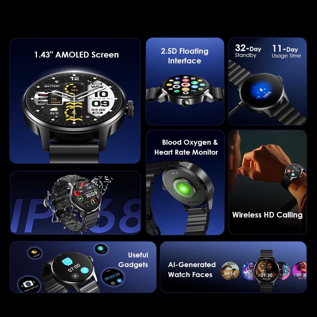 1 X Watch 5R Pro 1.43" AMOLED 2.5D Floating Interface IP68 Smart Watch