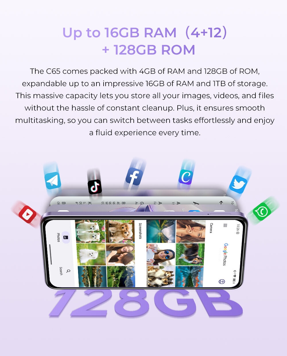 【Latest Android 15 system】Improves system stability and safety,offers you a new surface design and more personalisation options. 【6.7 inch HD+ perforated screen and 90 Hz】That has a higher screen-body ratio and offers you a clearer and more detailed image effect. 【16GB + 128GB/1TB expansion】Equipped with an octa-core processor that makes multitasking and extensive games a breeze.16GB RAM (4GB physical + 12GB virtual)+128GB ROM,up to 1 TB expandable storage 【50MP + 8MP camera】By supporting various photo modes, such as panorama, it is easy to capture beautiful moments. With the intelligent beauty function provides a more natural effect. 【5150 mAh battery and OTG】a long battery life,OTG reverse charging to charge other devices anytime and anywhere. 【Fingerprint and GPS】With a comprehensive navigation system GPS + GLONASS + Beidou + Galileo, it can locate it exactly wherever you are