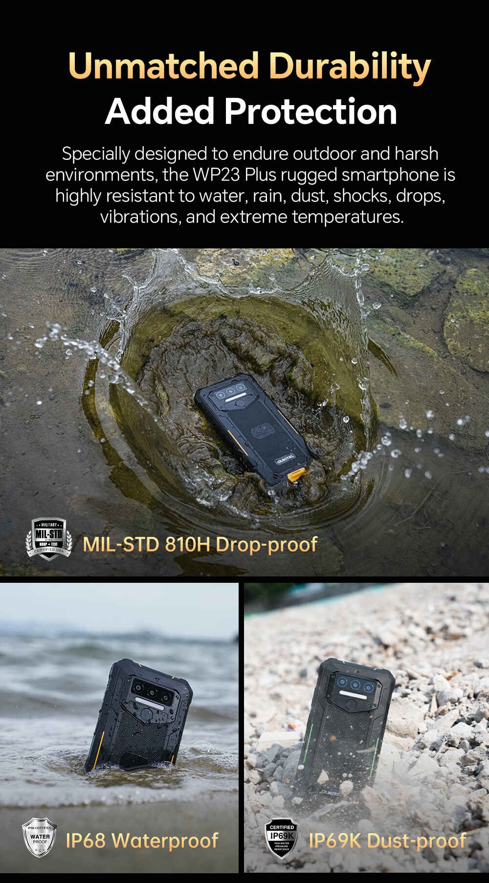 • IP68/IP69K & MIL-STD-810H,Waterproof, dustproof, and drop-proof