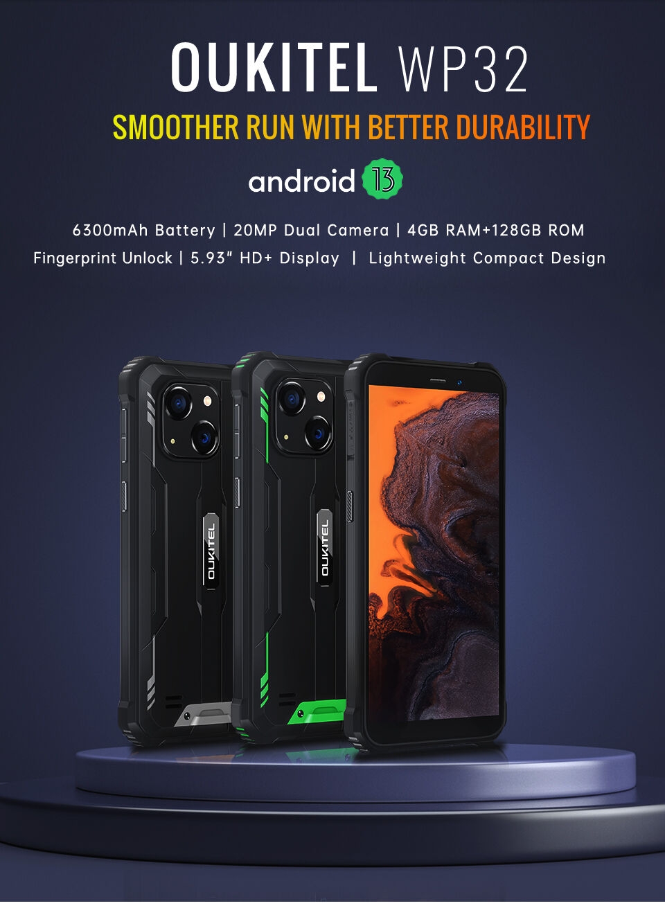Oukitel WP32 Ultra-Thin Rugged Smartphone 128GB/16GB RAM Android 14 Phones 6'' Display 20MP 6300mAh |