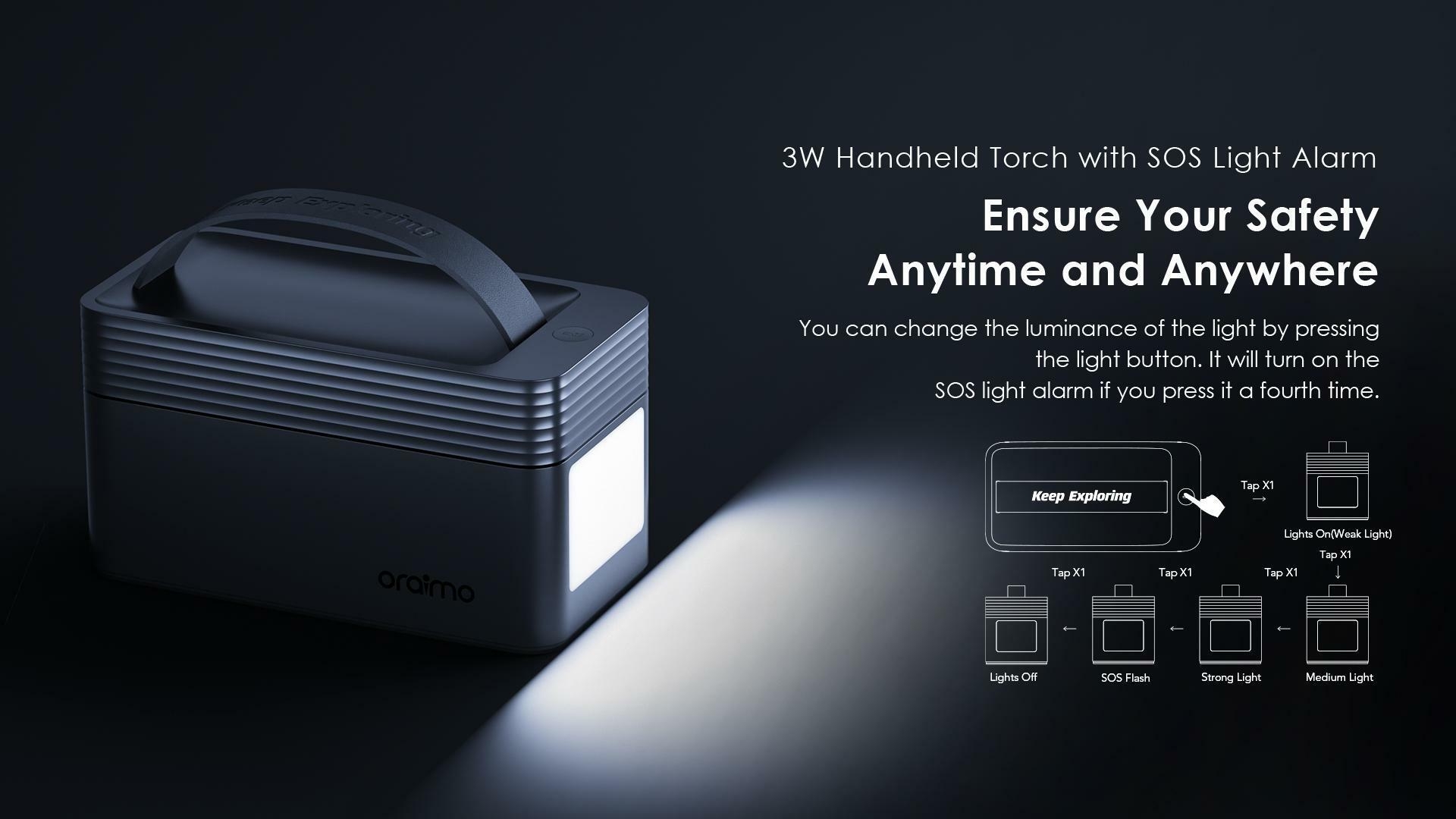 You can change the luminance of the light by pressing the light button. It will turn on the SOS light alarm if you press it a fourth time.