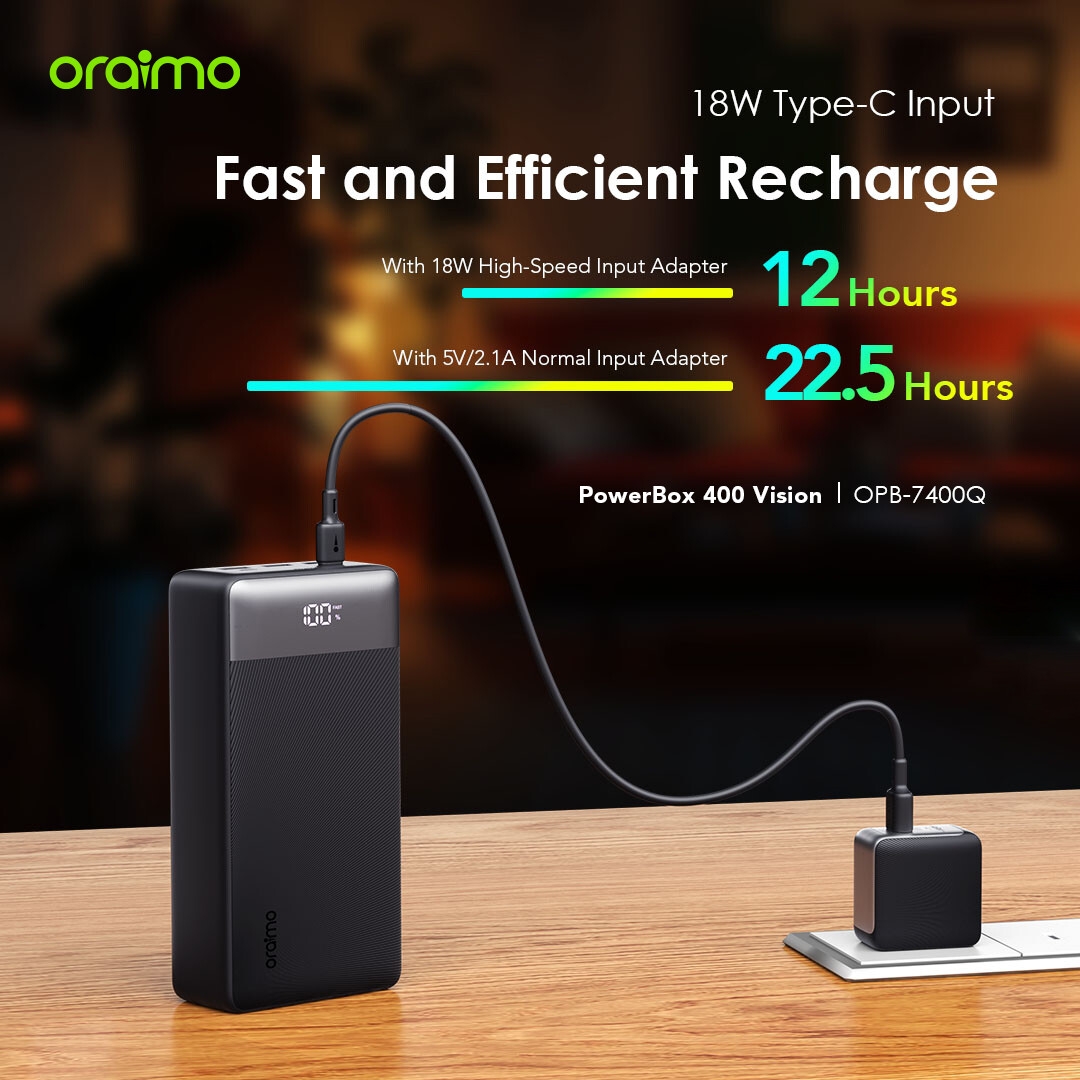 Quickly recharge your power bank with the 18W Type-C input, ensuring you're always ready for your next journey.