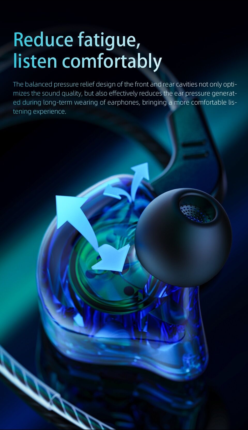 The front and rear cavity balance technology effectively relieves ear pressure for long-term comfort, while the semi-open rear chamber tuning ensures a natural, stable, and well-balanced sound field.