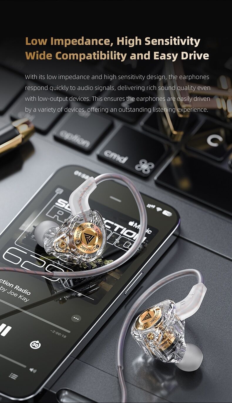 Triple-Technology Integration: 10mm Dynamic Coil for deep low-frequency diving; 6 Moving Irons for precise vocal restoration; Dual Planar Unit for expanded resolution and sound field.