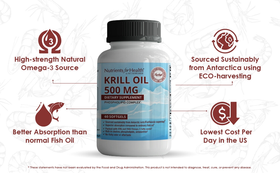 High-strength 500mg Premium Red Krill Oil per softgel | Provide 1000mg a day | Sourced sustainably from Antarctica - ECO-harvesting | Heart health support supplement | Pure Euphausia Superba Krill Oil Rich in Choline, Phospholipids, and Astaxanthin | Rich in phospholipids EPA and DHA - Omega-3 fatty acids | Natural Omega-3 Source | 2 softgels a day - 1 month's supply | No fishy odour or aftertaste | Best krill oil for men, women, young adults | Supports brain, joint health and healthly skin and eyes | Made in Canada | Best quality - manufactured in certified GMP facility.