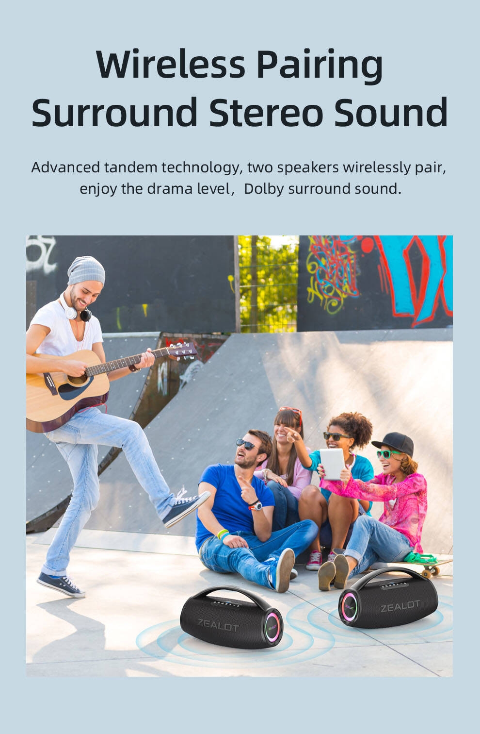 - Create a true immersive audio experience by pairing two speakers wirelessly.
