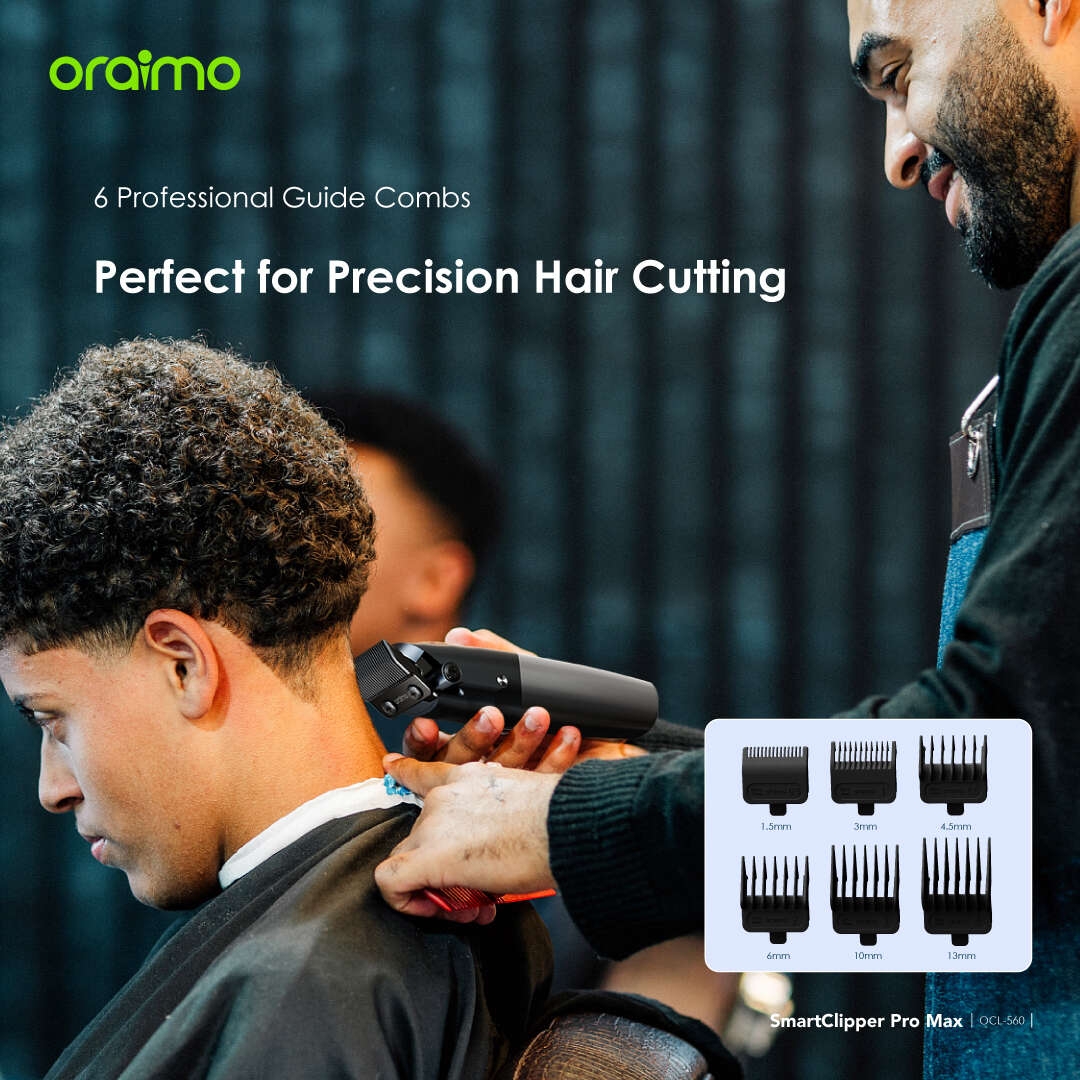 Oraimo SmartClipper Pro Max comes with 6 professional guide combs (1.5, 3, 4.5, 6, 10 and 13mm), ensuring you can easily and precisely achieve your desired hair length.