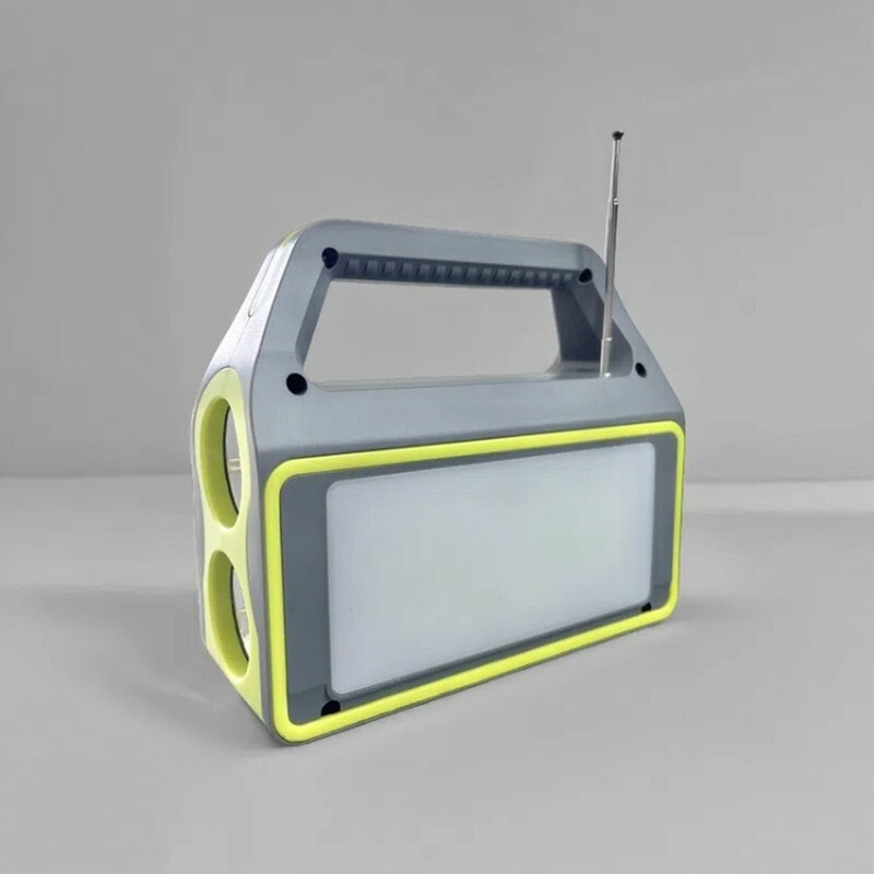This product is More than just a light, which is a portable hub featuring a radio, Bluetooth speaker, and power bank, all powered by a high-capacity rechargeable solar system.. It is equipped with a 5V/6W solar charging panel and a built-in 12000mAh lithium-ion battery, which can be used as an emergency lamp and can also charge various electronic devices such as tablets, phones, e-books, game consoles, and digital cameras through USB output. It is very convenient to use and can solve the problem of your device running out of power anytime and anywhere.