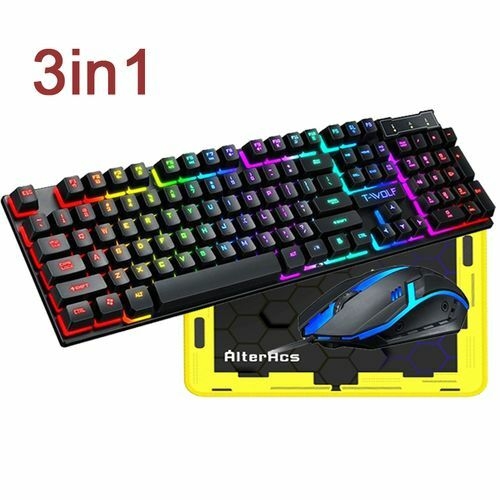 The set includes a high-performance gaming keyboard and a precision mouse + original mouse pad, both of which connect seamlessly via USB. The keyboard features a stunning illuminated design that not only adds style to your gaming setup, but also improves visibility in low-light environments. The keyboard's keys are ergonomically laid out and feel comfortable in your hand, allowing you to game for hours without any discomfort or fatigue!