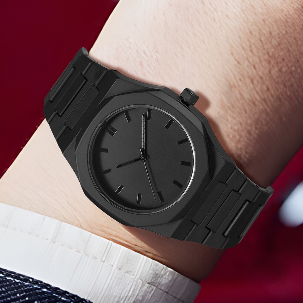What’s in the box1 x 4 IN 1 Plastic Strap Men Watch Set Trendy and Fashionable Quartz Watch Bracelet Necklace Ring Set - Black