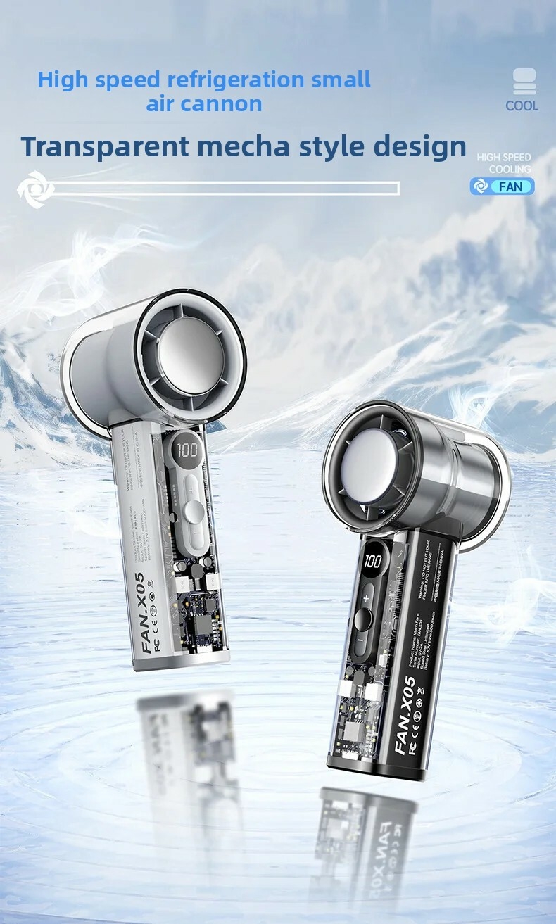 VoltEra High-Speed Handheld Small Fan Violent Semi-Conductor Cooling Transparent Mecha-Style Household Electric Fan Plastic Material