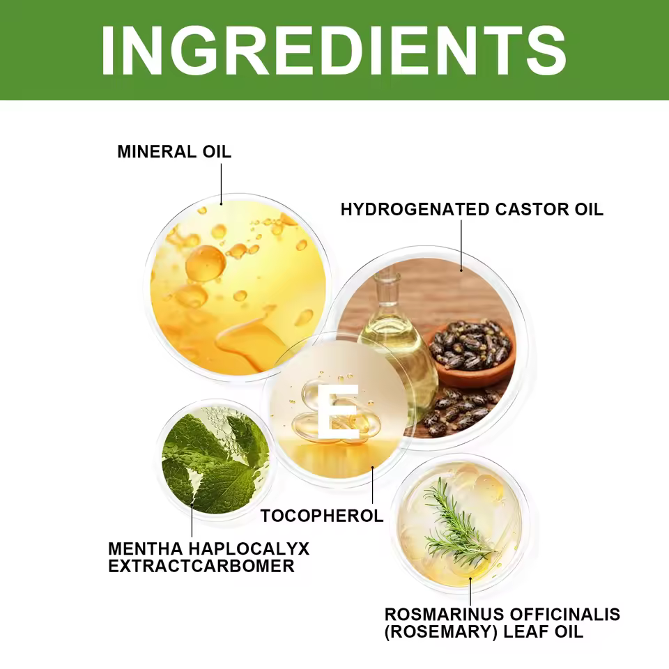 Ingredient:Rosemary Oil, Coconut Oil, Peppermint Extract, Arborvitae Leaf Extract, Castor Oil, Olive Oil