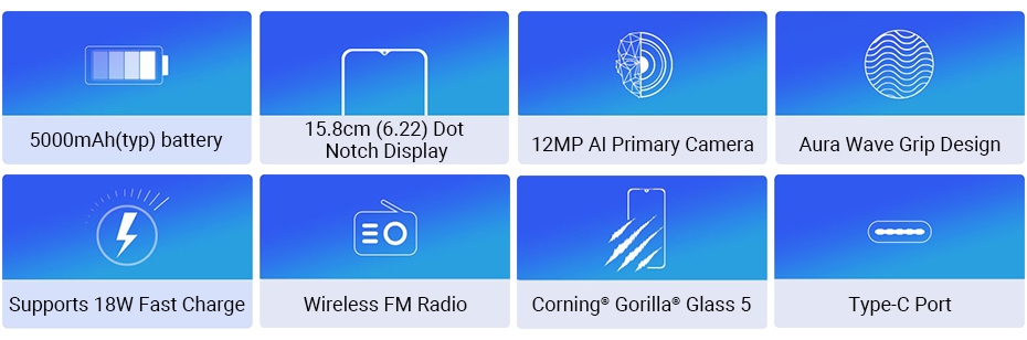 6.22'' 19:9 HD+ Display | Dot Notch Design | Corning Gorilla Glass 5