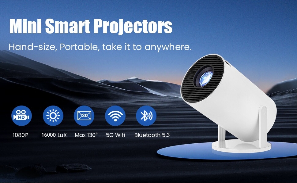 Mini Portable Projector, Supports 4K 1080P, Dual-Band WiFi 6 5G, Wireless Bluetooth 5.0, Android 11, Includes Bluetooth Speaker