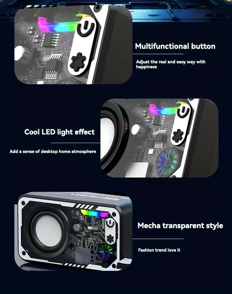 HomePhones & TabletsMobile Phone AccessoriesPortable Speakers & Audio DocksPortable Bluetooth SpeakersMini Portable Wireless Bluetooth Speaker with RGB LED Lights - Heavy Bass, Loud Sound, USB Rechargeable, Compact Design for Travel & Home