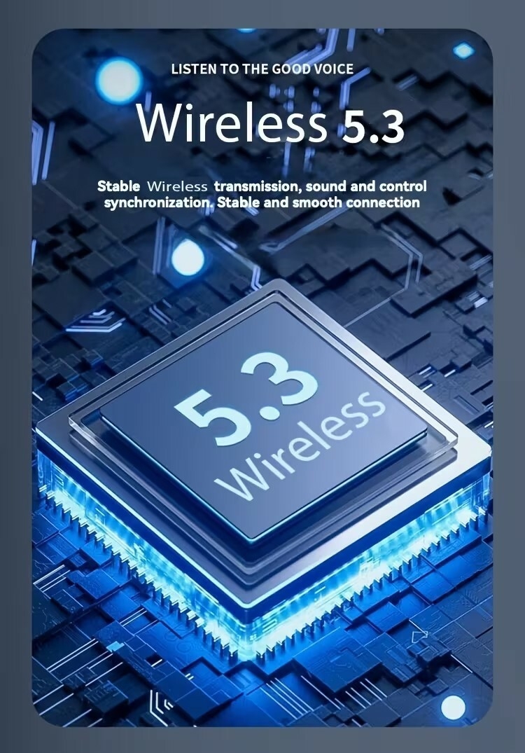 Powered by the latest Bluetooth 5.3 technology for a faster and more stable connection. It pairs instantly with all iPhones, Android phones, tablets, and laptops within a 15-meter range without signal drops.