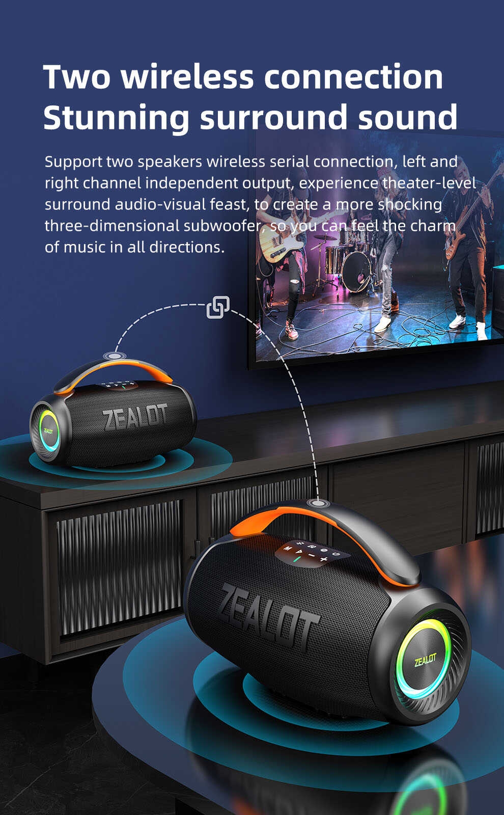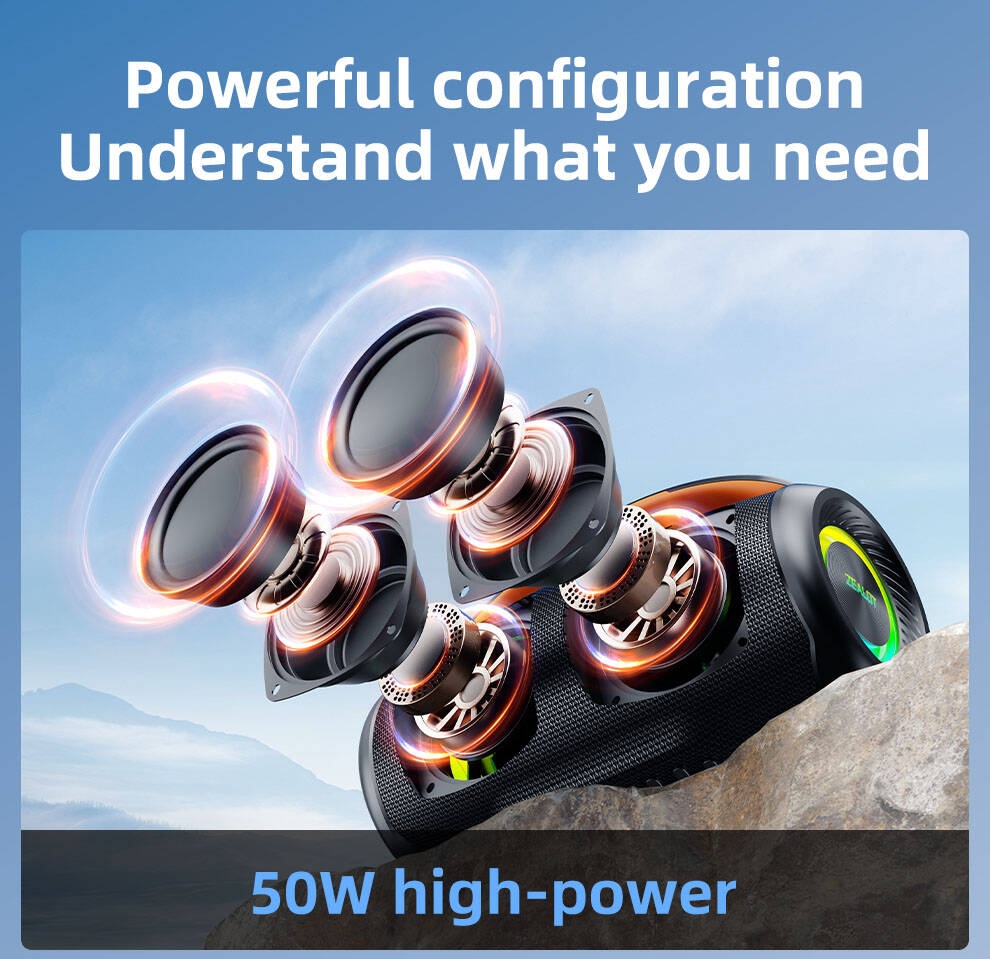 Key FeaturesPOWERFUL BASS6000MAH BATTERYRGB COLORFUL LIGHT EFFECTWIRELESS INTERCONNECTIONEQ MODEBT 5.3 VERSION50W HIGH POWER