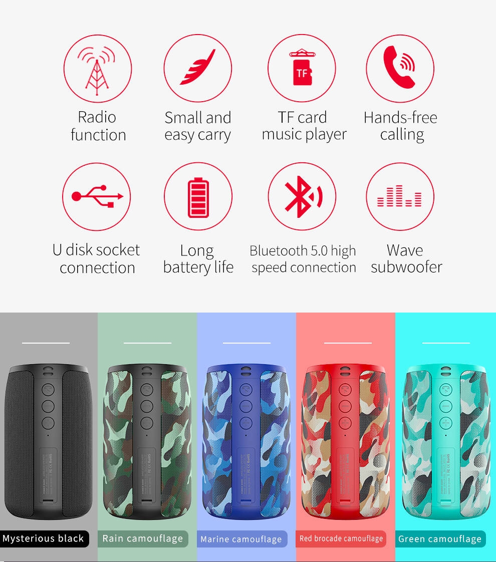 Style meets portability with the Zealot Outdoor Speaker's sleek, cylindrical design. Ready for any adventure with its IPX5 waterproof rating and versatile carrying options.
