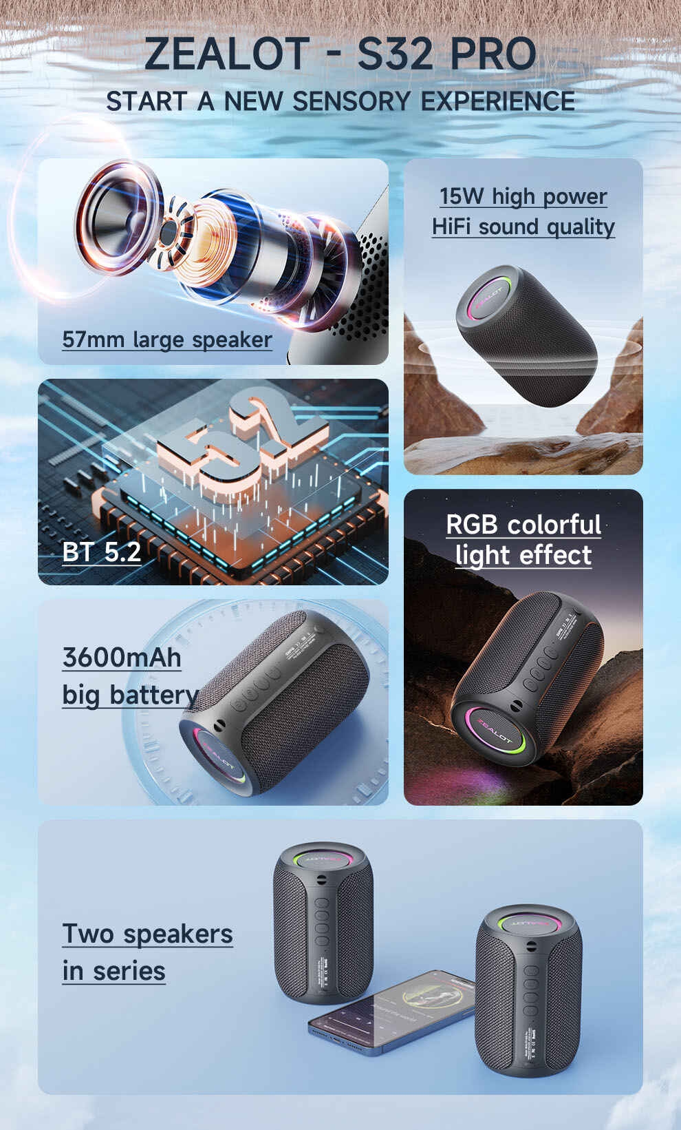 Zealot S32Pro 15W Long Lasting Big Battery 3000mAh Portable Bluetooth Speaker -Black₦ 20,188₦ 29,00030%Add to cart