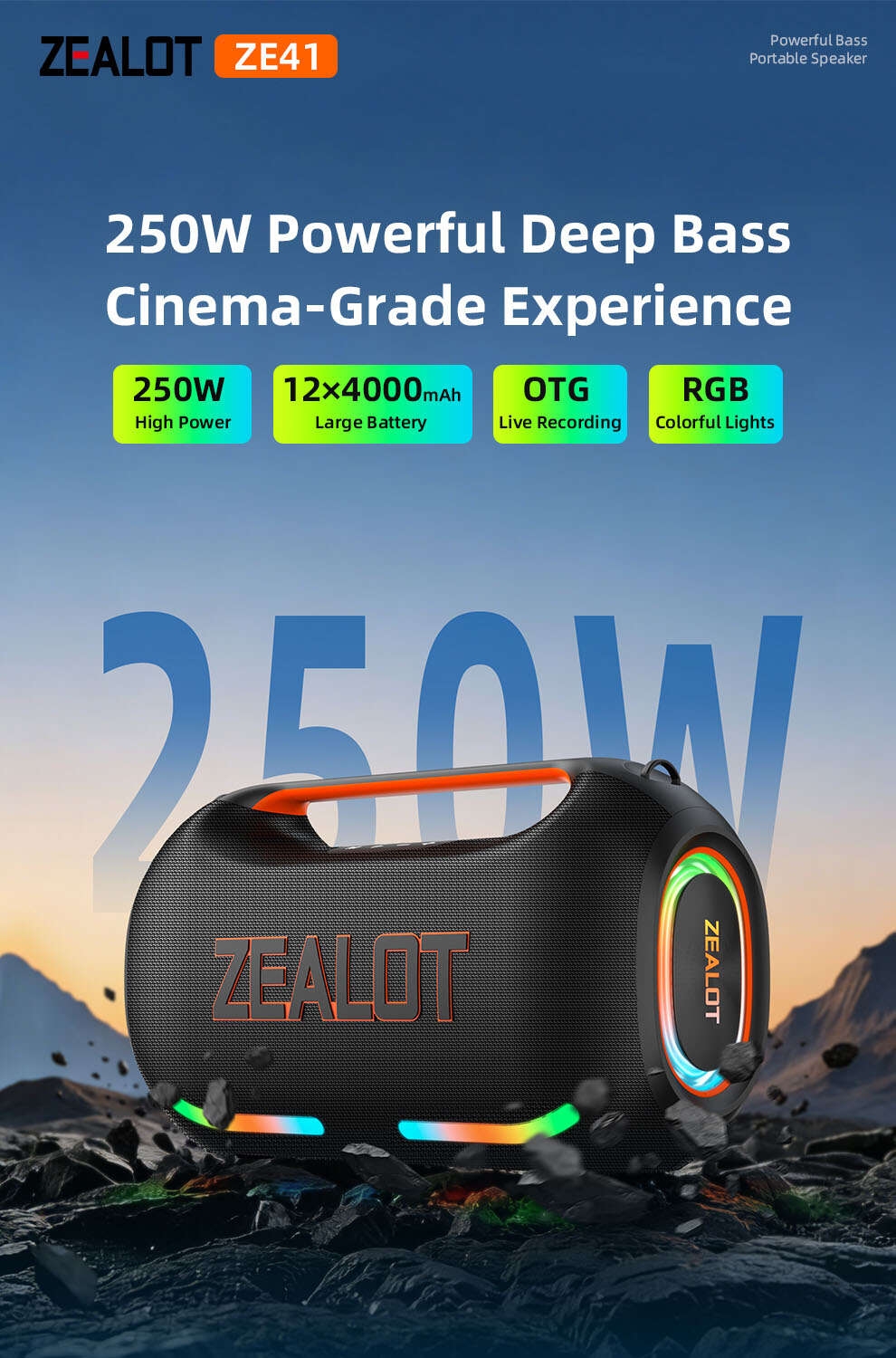 Zealot ZE41 PartyBox 250W Subwoofer Bluetooth Speaker