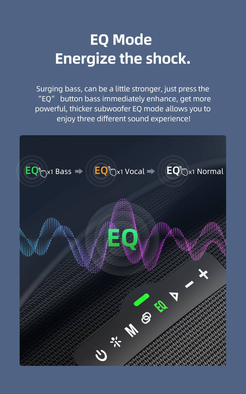 1.75W Bass with Dual Pairing - To achieve the incredible 160W, Zealot S98 comes with an exclusive custom 2 woofers and 1 tweeter. Combine with DSP chíp for top of the line bass stereo effect. Crazy and shocking. In addition, it is equipped with a dual pairing function, like a live concert experience, 36000 Mah Battery - More power, Better bass. What else? To support the perfect performance of the speaker, it uses a large capacity of 36000 mah battery as the base of the speaker, up to 50 hours of playback time, and can charge phones, tablets and other devices while playing3.Different Sound Effects - On Sound, Zealot all the investment is worth it. You want clear voices? Or a more bass effect. EQ button for you to achieve, 3 sound modes, to meet your listening preferences. The clear and dynamic mode light changes allow you to use at willAre you still worried? - Best Bluetooth 5.2 technology,